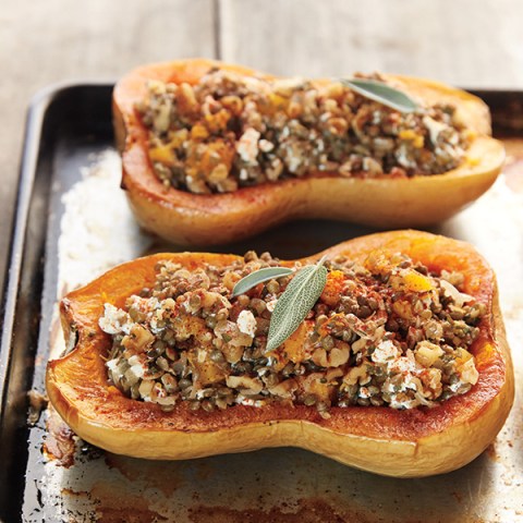 Butternut Squash Stuffed with French Lentils and Walnuts